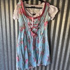 Scarlet Darkness Floral Dirndl Set Blue Pink Rose Oktoberfest Dress Blouse Large
