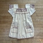 Vtg Mexican Huipil Dress Hand Embroidered Bird Oaxacan Tunic Pockets Youth