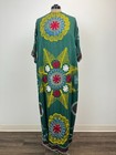 Vintage Green Kaftan Djellaba Maxi Dress Colorful Embroidery L XL XXL Festival