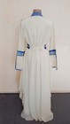 This product is a Middle Eastern gown dress in a white and gold color scheme, designed in size X- small and runs larger. Perfect for those looking for traditional Middle Eastern attire with a touch of elegance and sophistication. Item was only worn once for a few hours!