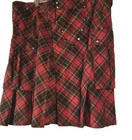 PRIDE Halloween Mens Scottish Tartan Utility Kilt Red Studded Plaid Big Pockets Size 44 . 24" Waist to hem No Flaws