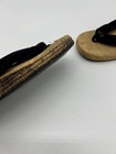 Step into a piece of Japanese tradition with these vintage Zori or Geta-style sandals. Crafted from natural woven straw, these unique flat sandals feature comfortable black velvet-like straps (Hanao). The sturdy construction includes a rubber sole with distinctive metal heel plates, showing their authenticity and durability. These sandals are a fantastic find for collectors of traditional Asian apparel, enthusiasts of Japanese culture, or anyone looking for a unique footwear statement. Please examine all photos for condition details, as they are a pre-owned item with character from their age and use. Each is approx 7 3/4" long x 3 1/4" wide.