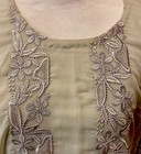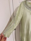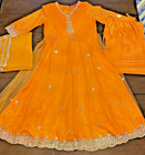 Small size worn once Beautiful details work on the front of the shirt fully lined full sleeves Dainty looking for a princess This product is a beautifully stitched Pakistani shalwar kameez set made from chiffon material, perfect for a party or special occasion. The elegant design and organza detailing add a touch of sophistication to the traditional attire. Complete with a matching dress and trousers, this outfit exudes a sense of beauty and style that is sure to make a statement. Small size