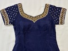 Indian Punjabi palazzo suit set in navy blue with gold embroidery. Includes kurti (top), flared palazzo pants, and matching dupatta. Features embroidered neckline and detailed borders with wide-leg pants for a stylish ethnic look. Perfect for weddings, parties, and festive wear. Ideal for a girl who is 5’3” to 5’6” and weights 110 to 130 lbs. Size: fits Small-Medium Bust: 34-35 in Arm hole: 15 in Sleeves: 7 in Waist: 29 in/ Elastic waist Top length: 36 in Bottom length: 36 in Keywords: Indian Punjabi Hindi salwar kameez palazzo suit ethnic wear kurti dupatta wedding party designer