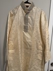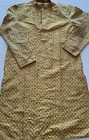 Vintage Mens XL Gold Jacquard Kurta Tunic Nehru Collar Wedding Festival India