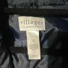 This Villager Liz Claiborne Gray White Trim Lined Single-Breasted Blazer Jacket in size 12 is a stylish and versatile piece for women's workwear or business attire. The jacket features a solid gray color with white trim, long sleeves, and a four-button front closure. Made from imported woven fabric, it is lined for added comfort and warmth, making it suitable for fall, winter, or spring seasons. The blazer is from the Villager brand, a Liz Claiborne company, and is a single-breasted style suit jacket perfect for any professional setting.