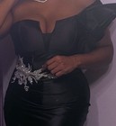 Black One-Shoulder Formal Gown ✨ Size XL Elegant satin finish with structured corset top + thigh slit Statement shoulder detail + silver embellishment at the waist Perfect for: Prom, weddings, formal events, birthday dinners, photoshoots Worn once – excellent condition