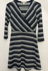 Francesca’s MiAmi Blue Green Striped Knit A-Line V-Neck Dress 3/4 Sleeve size S