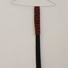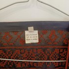 The product is a modern Jordanian embroidered kimono abaya in black, featuring intricate lace and cross-stitch details. The black color and red accents add a touch of elegance and style to this unique piece of clothing, making it a standout item in any wardrobe.