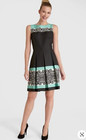 Tahari ASL Levine Black Pleated Fit and Flare Dress Paisley Sz 2 Career Cocktail