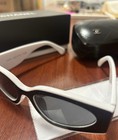 CHANEL SUNGLASSES BLACK WHITE FRAME GREY LENSES CLASSIC 6056 CAT EYE WOMEN