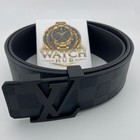 Model: M9808. 1x LV M9808 Belt / Sz. Pattern: Damier Graphite Check. Buckle: Signature LV logo buckle. ClassicDamier Graphite canvas – one of Louis Vuitton’s most popular designs. Color: Black / Gray / Graphite.