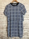 TopShop Dress Womens 6 Navy Blue Medallion Print Layered Open Back Stretch