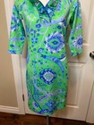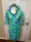 Gretchen Scott Green & Blue Magic Carpet Print Ruffneck Jersey Dress, Size XS