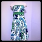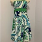 My Michelle Strapless Paisley Dress Juniors 9 Green Blue Fit Flare Boho