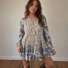 Free People Boho Mixed Floral Mini Dress S Cream Blue Peasant Tunic Cottagecore