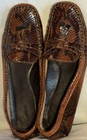 LIZ CLAIBORNE WOMEN'S Size 8 M, BROWN LEATHER w PYTHON DESIGN, DRIVING MOCS, EUC