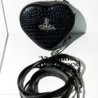 The glossy black croc-embossed patent finish gives the bag a bold and stylish Y2K aesthetic. A beautiful Vivienne Westwood heart-shaped crossbody bag featuring the iconic Orb logo. ✨ Vivienne Westwood Heart Crossbody Bag.