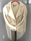 Ivory White Wool Moto Biker Jacket by ALL SAINTS Size XS Motorcycle Fringe