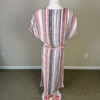 Lane Bryant multicolor striped maxi dress with adjustable straps, size 14 16. Straps can also be crossed in the back. Elastic waistband. See photos for measurements. Stitch has come out in one spot at seam- see photo. Please check out my other listings. God bless!
