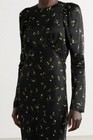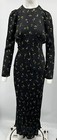 Les Reveries Floral-Print Satin Long Sleeve Midi Dress in Black sz 4