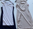 Lot of 4 Women's SZ 8 Career Wear Dresses 2 Calvin Klein 1 Cheetah B 1 Connected Apparel Beige dress was worn only once Blue white dress is unique with side zippers. Geometric dress along with two mentioned above has slimming effect Dark gray dress has short sleeves and is belted See photos for measurements and signs of wear if any Good used condition All are dry cleaned few days ago before making this listing