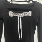 Square neck lace trim bow detail long sleeve mini dress Party Night Out Size XXS