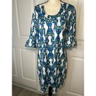 JACKIE Z Blue White Green Ikat Print Bell Sleeve Casual Dress Size Small