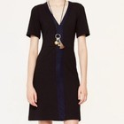 TORY BURCH. SALLARE Tory Burch Sallare Suede Trim Tunic Dress Size XL Black body with navy goat suede leather trim around neckline and down front. (Some slight marks on suede) as seen in pic 67% modal/17% wool/15% polyamide/1% elastane. Above knee Gentle A line shape. Pullover styling. Stretch for comfort. Great dress to transition from work to an evening out with accessories. 19 inches across chest 17 inches across waist 39 inches from shoulder to front hem Good Used Condition See pics has a mark on front that is shown in pic 0654/12 B2