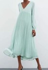 Zara Sea Foam Green Pleated Maxi Dress S Oversized Semi-Sheer V-Neck