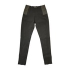 Fabrication: Classic stretch denim Style: Pull-on, jean-inspired legging Waist: Flat, encased elastic comfort waistband Rise: Sits just below natural waist Design Details: Mock front fly stitching; back yoke Pockets: Faux front pockets with metal rivets (non-functional); functional back patch pockets with metal rivets Leg Type: Slim, tapered Length: Ankle Inseam: Approx. 29"L Fit: Close-fitted: follows your curves, outlining your figure Content: 59% cotton, 32% polyester, 9% spandex Care: Machine wash, tumble dry Country of Origin: Imported