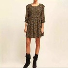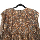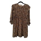 BA&SH Sandra Ruffled Georgette Mini Dress In Brown Carbone Sz Medium Brown, leaf printed mini dress Ruffled details Keyhole opening with button closure on back Lined 100% polyester Great preloved condition, no flaws to note Size medium 20" pit to pit, 36" long