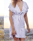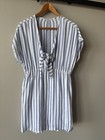 Rails Charlotte Blue and White Striped Tie-Front Linen-Blend Dress Size L