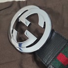 Authentic Gucci Black Green And Red Striped Belt, Men Size 32-34 IT 95CM