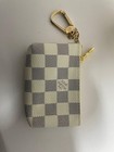 Luxury accessory crafted from the iconic Damier Azur canvas. Collection: Damier Azur. Durable Damier Azur coated canvas exterior. Model: Key Cles / Key Pouch. Style: Key Chain Coin Pouch. Attached key ring for convenient key storage.
