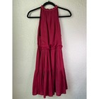 Hommage Halter Dress Sleeveless Button Front Tiered Mini Dress Maroon Red