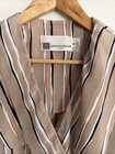 PIERRE BALMAIN Vtg Taupe 6 Dress Stripe Longsleeve Career Collared 70s 80s