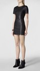 Dress is EXACTLY as Photographed. Zippers in Perfect Working Order. No Holes or Stains. Exact Color Depth May Vary due to Viewing Device. A slim fitting, short sleeved, leather and jersey dress. The feliz leather dress features raglan sleeve construction and dull nickel allsaints signature zip detail with self-leather pullers at side front, from waist seam to hem.