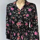 Free People Lighten up Floral Long Sleeve Black Pink Mini Dress Size M Medium