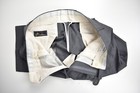 Label: Super 120's By Tessilstrona. Trouser Style: Dress Pleat. Trouser Lining: Partial. Fabric weaves are based on feel. Relaxed fit is usually a fuller cut through the seat and leg. Model: Duncan.