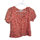 Monteau Blouse Women's Medium Floral V-Neck Short Sleeve Boho Shirt Top