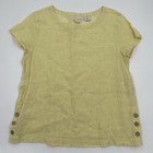 Cynthia Rowley Women 100% Linen Short Sleeve Top Yellow With Side Button Small