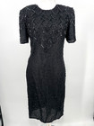 J.M.C Vintage Black Dress Size S Sequin Beaded 100% Silk Evening Formal Cocktail