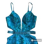 Get ready to sparkle and shine in this stunning Rachel Allan fitted short sequined cocktail dress! The dress features a gorgeous paisley pattern in shades of green and is made from high-quality nylon fabric with sequin and beading accents.