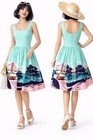 Collectif Retro 50s Fit N Flare San Francisco Novelty Print Cotton Dress S