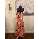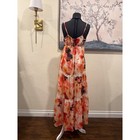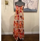 Boho Butterfly Floral Tiered Maxi Dress Beaded Neckline Orange Cream Small