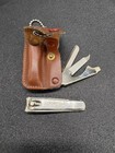 Vintage Advertising Leather Finger Nail Manicure Kit. Nail clippers have ware around the top swivel so please inspect pictures.