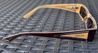 On the temple arm you will find three numbers. The first is the lens width, the second is the bridge width, and the third is the temple length. sticky substance?. on side arm. We remove the sticker to allow for photos of the inner side arm markings including size and model number.