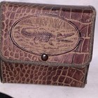 Vtg Mens Wooden Black Brush Comb Set in Faux Leather Case Alligator Image/13a