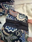 The dark color provides a classic look that suits any travel ensemble. The multi-pocket layout allows for efficient storage, ensuring everything has its place and is easy to find. This item is in used condition, showing signs of prior use.